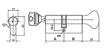 Профильный цилиндр имеет 5 пинов для секретности и штифт против высверливания.